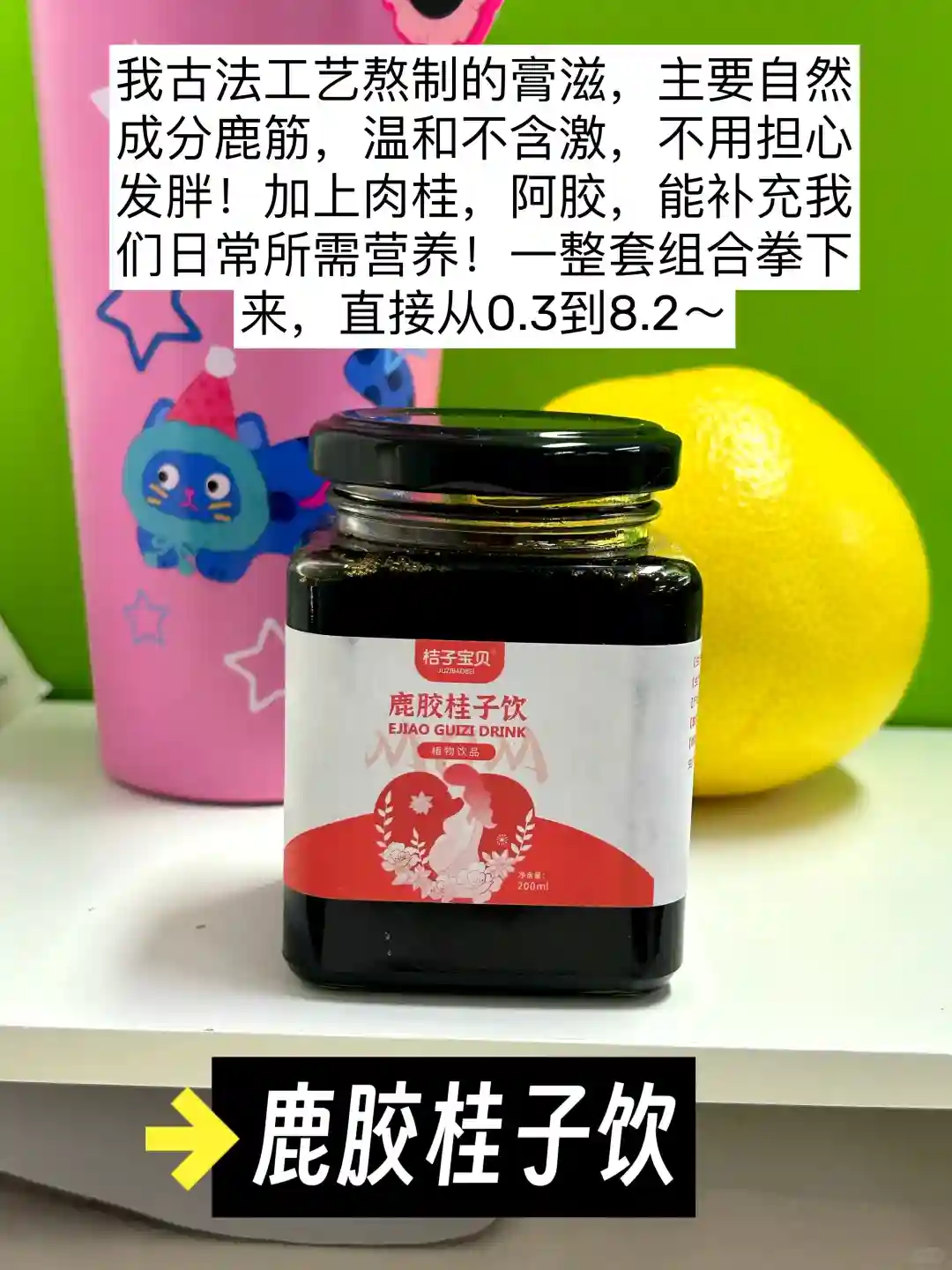 含有稀有成分鹿筋,搭配身体所需补养的肉桂,阿胶,一天两杯,帮助增厚子宫内服,调理姨妈周期,一定程度上提高妊娠率,对身体好膏滋细腻,喝起来不腻,需要长期坚持下来